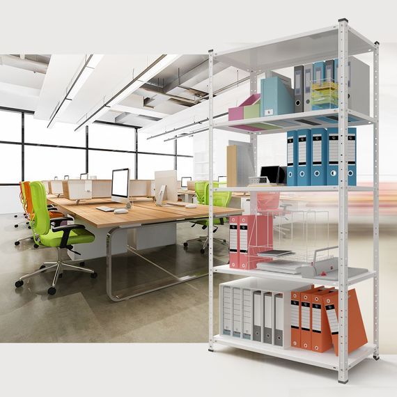 Regál 170x75x30 bílý Metkas, REK-2, 175 kg, 5 políc, lakovaný, kovový
