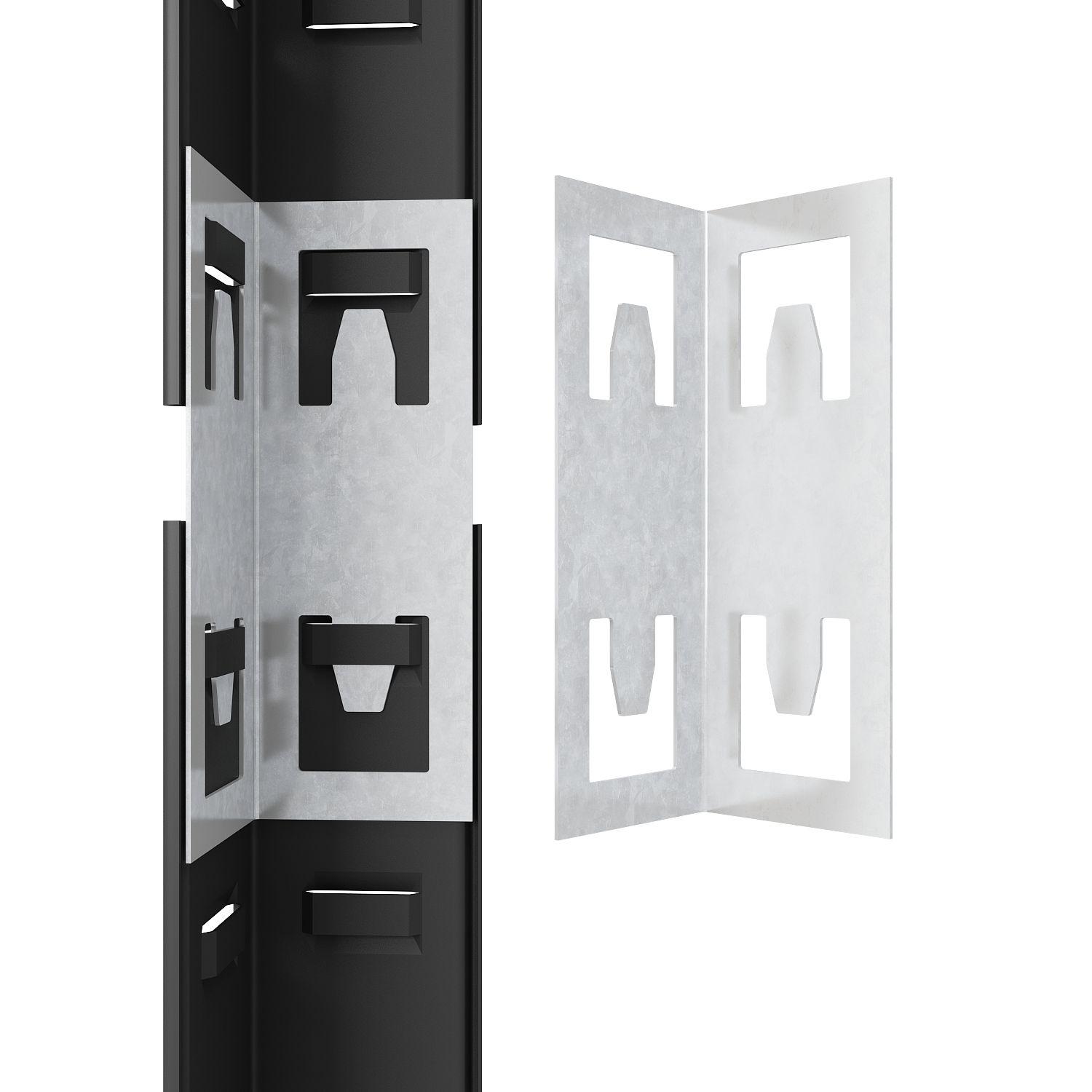 - Regály jsou upevněny na háčcích, což usnadňuje a urychluje montážní proces (15–30 min).